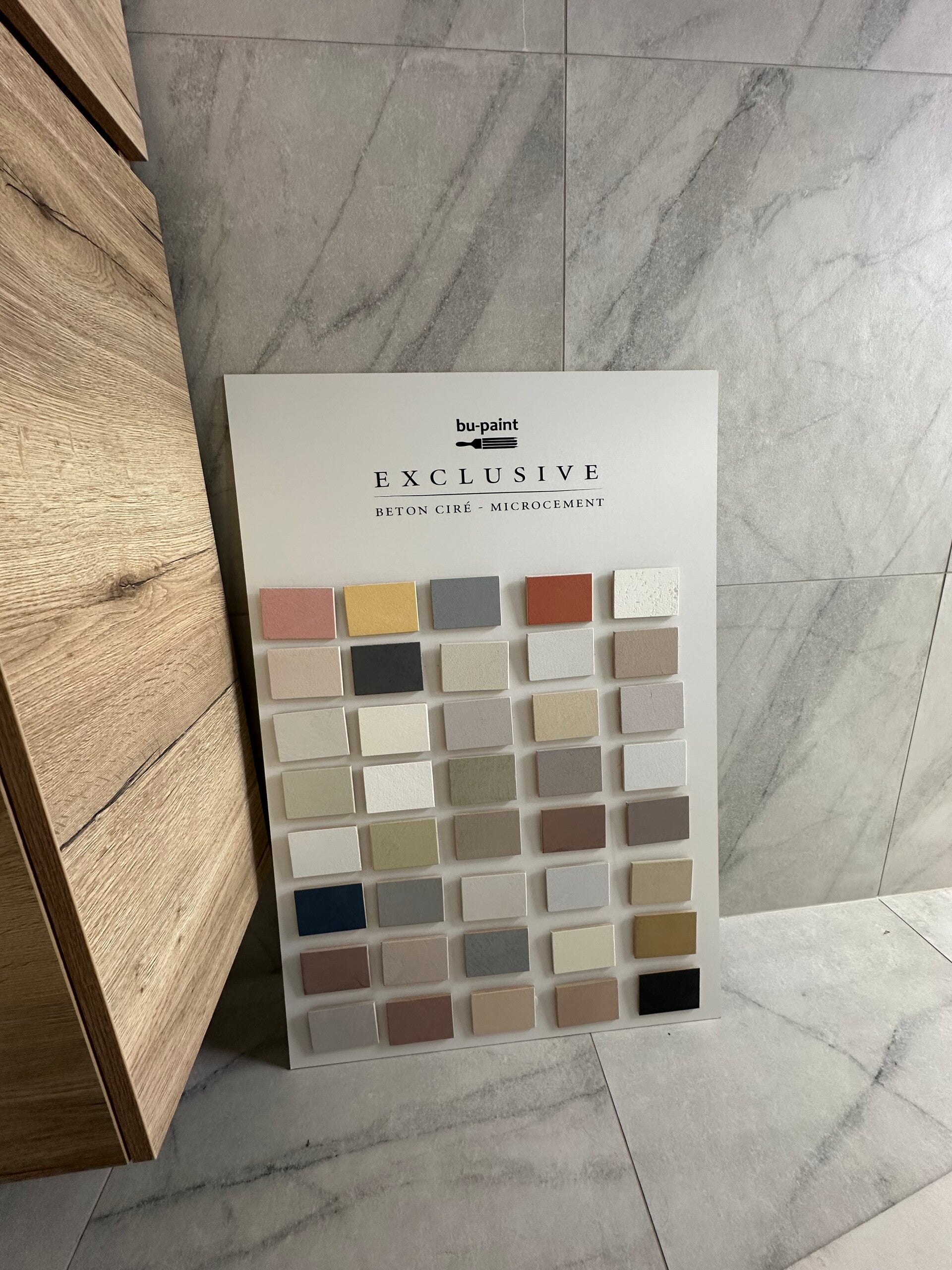Wij presenteren u graag onze exclusieve kleurenwaaier met echte stalen. Zo kunt u de kleuren en structuren zelf ervaren precies zoals ze in uw interieur tot leven zullen komen. Omdat microcement een waardevolle investering is, komen wij persoonlijk langs om u te begeleiden in het maken van de juiste keuze. Zo bent u zeker van een resultaat dat perfect bij uw stijl past.